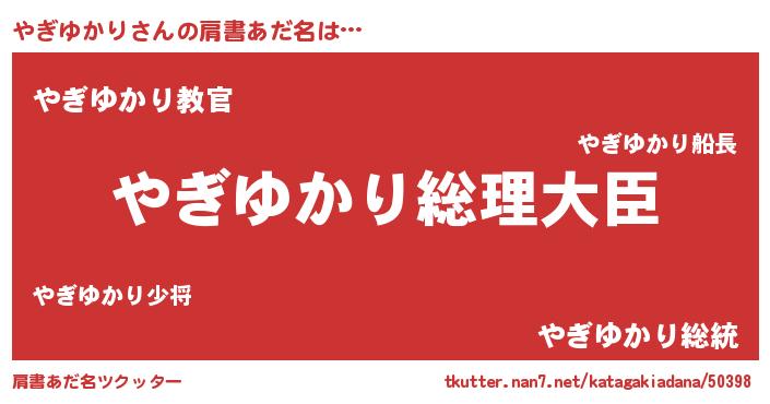 | 欧米人風あだ名 | 『やぎゆかりクリステル』 |