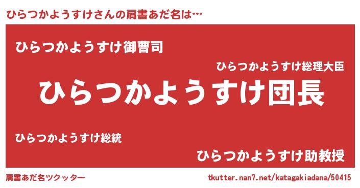 | 男性向けラノベタイトル風あだ名 | 『ひらつかようすけの嫁は女の子じゃないと思った?』 |