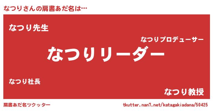 | 女子向けラノベタイトル風あだ名 | 『なつり様がみてる』『なつり恋絵巻』 |