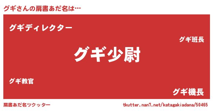 | ヒーロー風カッコイイあだ名 | 『幻影騎士グギ』『仮面グギダー』 |