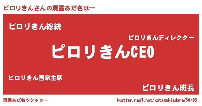 | 意味不明あだ名 | 『ペロリンピロリきん』『自称ピロリきん』 |