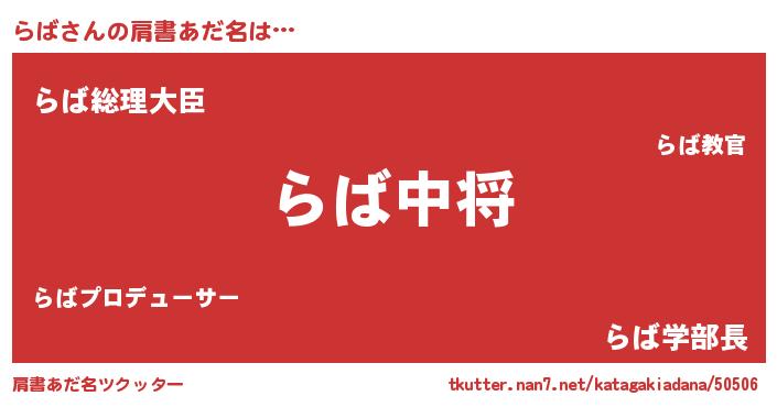 | ヘコむあだ名 | 『酢こんぶ』『らばお』『らば(爆)』 |