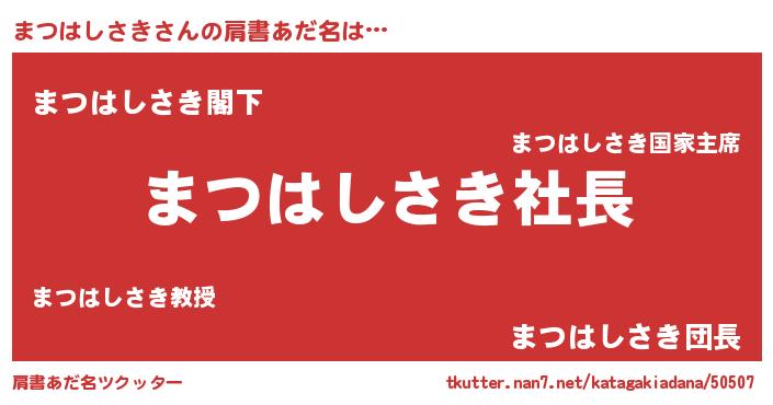 | ヒーロー風カッコイイあだ名 | 『スーパーマツハシサキ』『天弓騎士マツ』 |