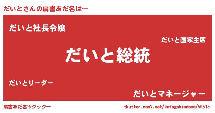 | 男性向けラノベタイトル風あだ名 | 『魔法科高校のだいと』『だいとの憂鬱』 |