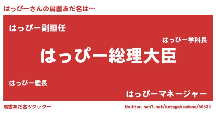 | 男性向けラノベタイトル風あだ名 | 『やはりはっぴーの青春ラブコメはまちがっている 』 |