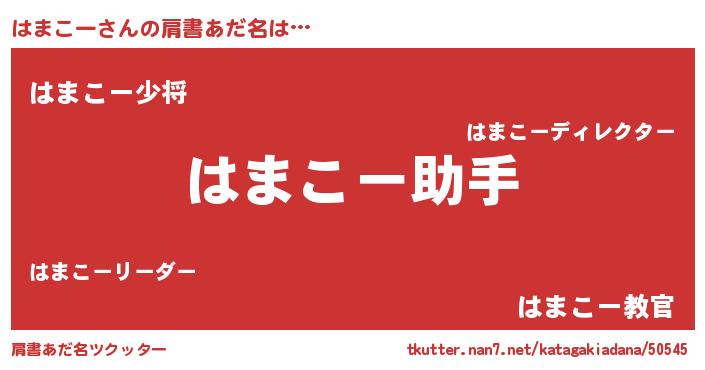 | 男性向けラノベタイトル風あだ名 | 『ノーゲーム・ノーハマコー』 |