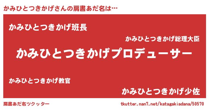 | 男性向けラノベタイトル風あだ名 | 『かみひとつきかげに滅ぼされるだけの簡単なお仕事です』 |