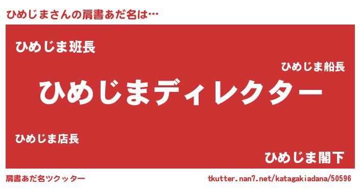 | 男性向けラノベタイトル風あだ名 | 『ひめじまに滅ぼされるだけの簡単なお仕事です』 |