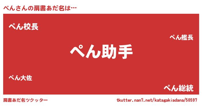 | 欧米人風あだ名 | 『ダニエルぺん』『ダルビッシュぺん』 |