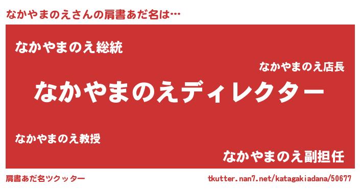 | 男性向けラノベタイトル風あだ名 | 『なかやまのえに滅ぼされるだけの簡単なお仕事です』 |