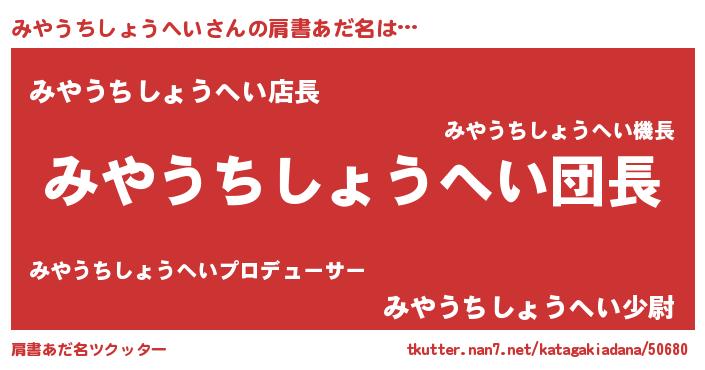 | ヘコむあだ名 | 『みやを』『みやにゅー』『酢こんぶ』 |
