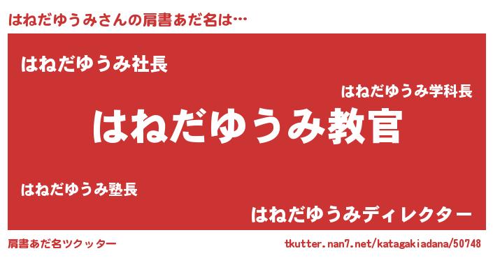 | 恥ずかしいあだ名 | 『プリティーはねだゆうみ』『はねちん』 |