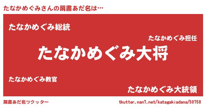 | 男性向けラノベタイトル風あだ名 | 『タナカメグミスレイヤー』 |