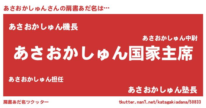 | 意味不明あだ名 | 『あさおかしゅんフォーエバー』 |