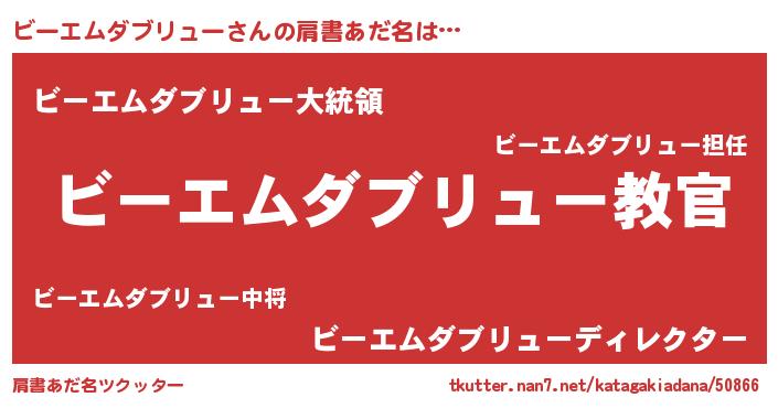 | 男性向けラノベタイトル風あだ名 | 『魔弾の王とビーエムダブリュー』 |