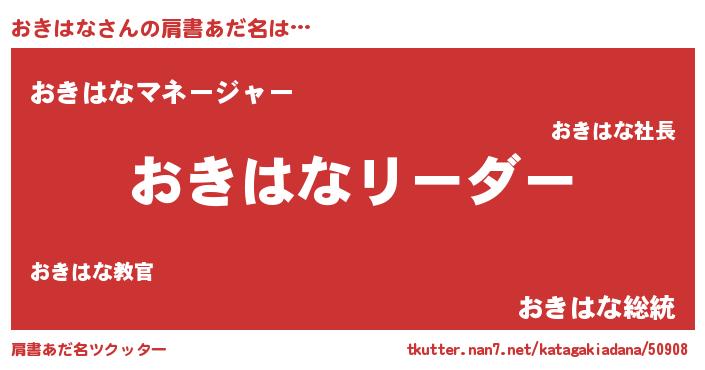 | ヒーロー風カッコイイあだ名 | 『魔戒騎士オキ』『超時空戦士オキハナ』 |