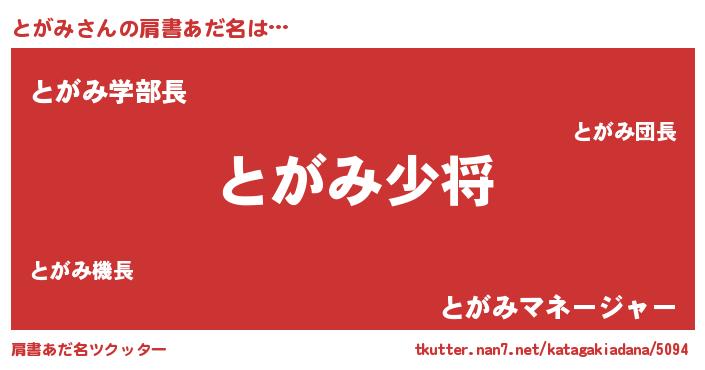 | ポケモン風あだ名 | 『トガキング』『トックウザ』 |