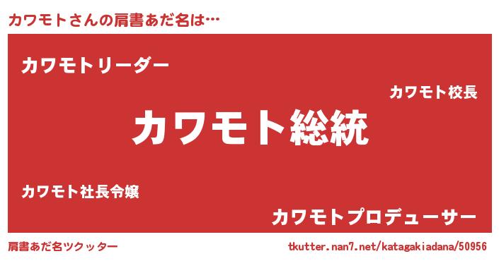 | 意味不明あだ名 | 『自称カワモト』『永久保存カワモト』 |