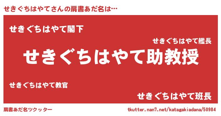| 意味不明あだ名 | 『眠気覚ましガムせきぐちはやて味』 |