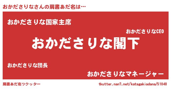 | 欧米人風あだ名 | 『ケンブリッジおかださりな』 |