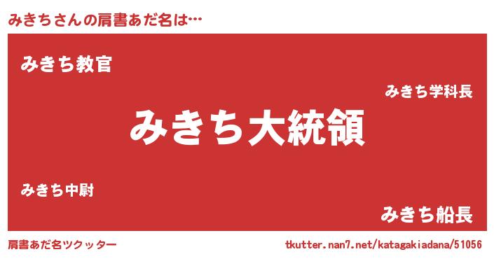| 女子向けラノベタイトル風あだ名 | 『みきちの婚約者』『死神みきちの再婚』 |