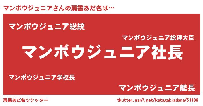 | ヘコむあだ名 | 『マンにー』『豆乳』『マン太郎』 |