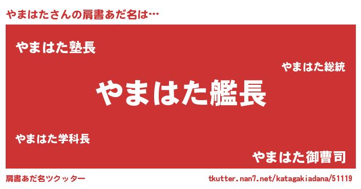 | 男性向けラノベタイトル風あだ名 | 『うちのやまはたが世界を掌握している!』 |