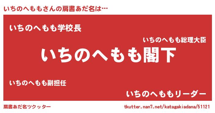 | 男性向けラノベタイトル風あだ名 | 『Re:いちのへももから始める異世界生活』 |