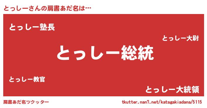 | 女子向けラノベタイトル風あだ名 | 『闇のとっしー』『とっしー様がみてる』 |