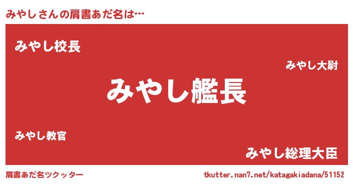 | ファンタジー風あだ名 | 『カークミヤラー』『ミヤディッシュ』 |