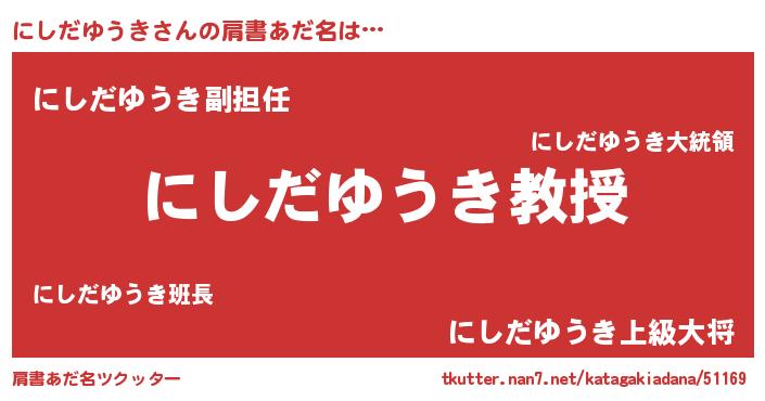 | ヘコむあだ名 | 『にしだゆうき(笑)』『酢こんぶ』 |