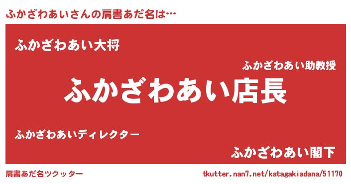 | 胡散臭い通販商品みたいなあだ名 | 『億万長者になれる水晶球…その名も「ふかざわあい」』 |