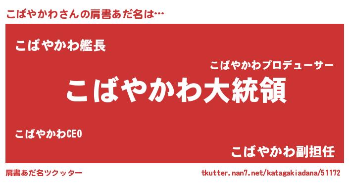 | 男性向けラノベタイトル風あだ名 | 『やはりこばやかわの青春ラブコメはまちがっている 』 |