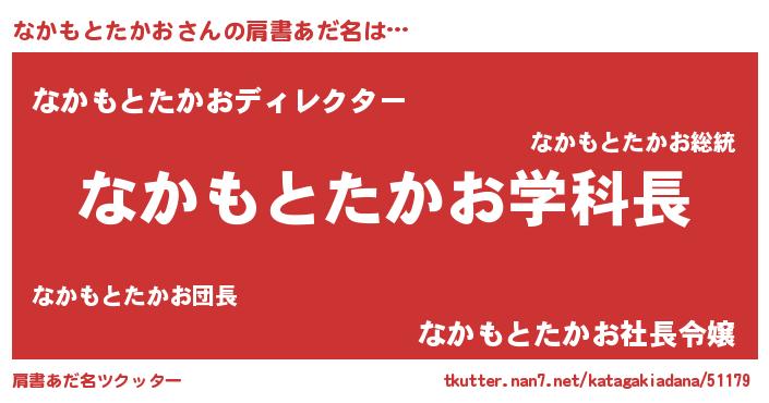 | 男性向けラノベタイトル風あだ名 | 『ノーゲーム・ノーナカモトタカオ』 |