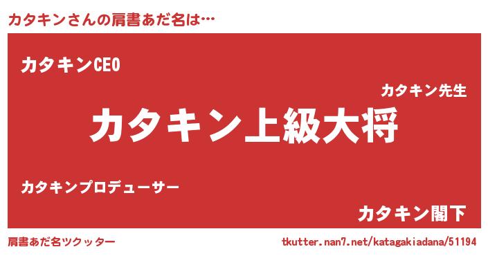 | ヒーロー風カッコイイあだ名 | 『スーパーカタキン』『ネオカタキン』 |