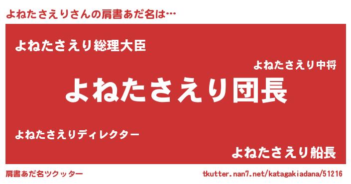 | ポケモン風あだ名 | 『ヒヨネタサエリ』『ヨネタダネ』 |