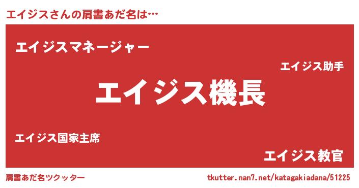 | 意味不明あだ名 | 『住所不定無職エイジス(81歳)』 |