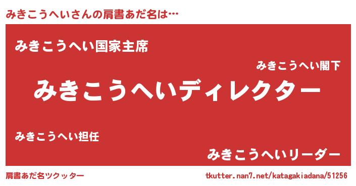 | 男性向けラノベタイトル風あだ名 | 『みきこうへいに滅ぼされるだけの簡単なお仕事です』 |