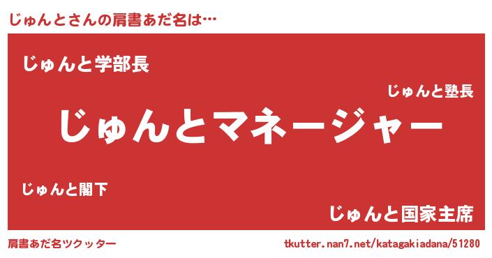 | 男性向けラノベタイトル風あだ名 | 『はたらくじゅんとさま!』 |
