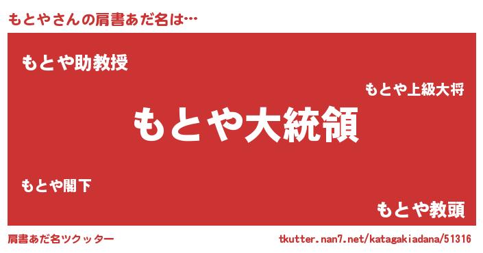 | ポケモン風あだ名 | 『モトヤダネ』『モックウザ』 |