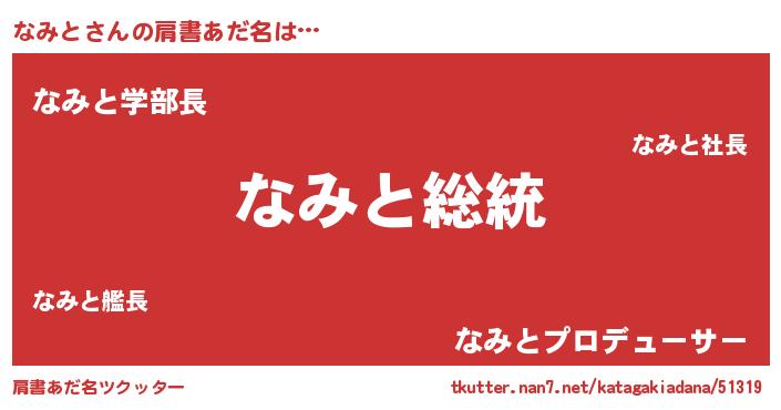 | ヘコむあだ名 | 『なみもー』『なみと(遠い目)』 |