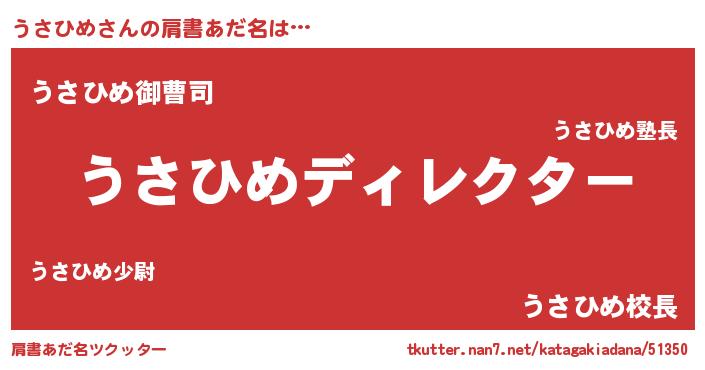 | ヘコむあだ名 | 『うさにゅー』『うさひめ(震え声)』 |