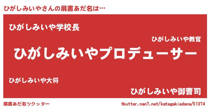 | ヒーロー風カッコイイあだ名 | 『友情の使者ひがしみいや』 |
