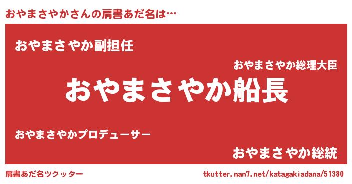 | 欧米人風あだ名 | 『おやまさやか・ステッグマイヤー』 |