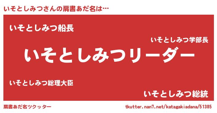 | 意味不明あだ名 | 『とにかく怪しいいそとしみつ』 |
