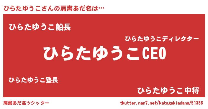 | 男性向けラノベタイトル風あだ名 | 『ヒラタユウコアートオンライン』 |