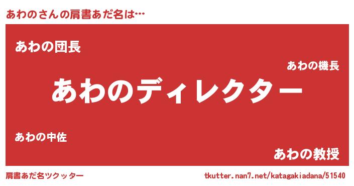| ヒーロー風カッコイイあだ名 | 『天弓騎士アワ』『正義の使者あわの』 |