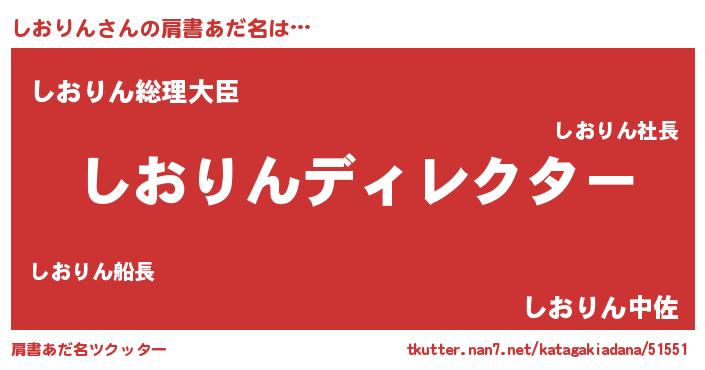 | 男性向けラノベタイトル風あだ名 | 『しおりんに滅ぼされるだけの簡単なお仕事です』 |