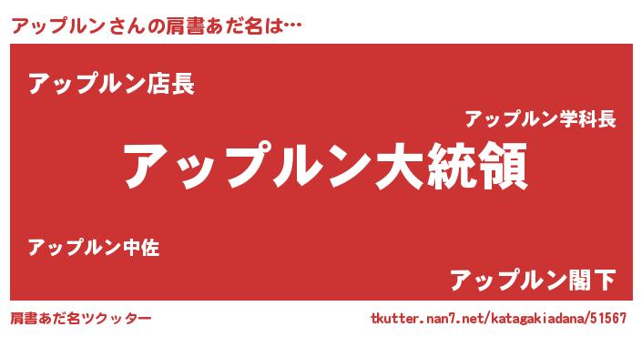 | 男性向けラノベタイトル風あだ名 | 『やはりアップルンの青春ラブコメはまちがっている 』 |