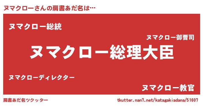 | 男性向けラノベタイトル風あだ名 | 『やはりヌマクローの青春ラブコメはまちがっている 』 |